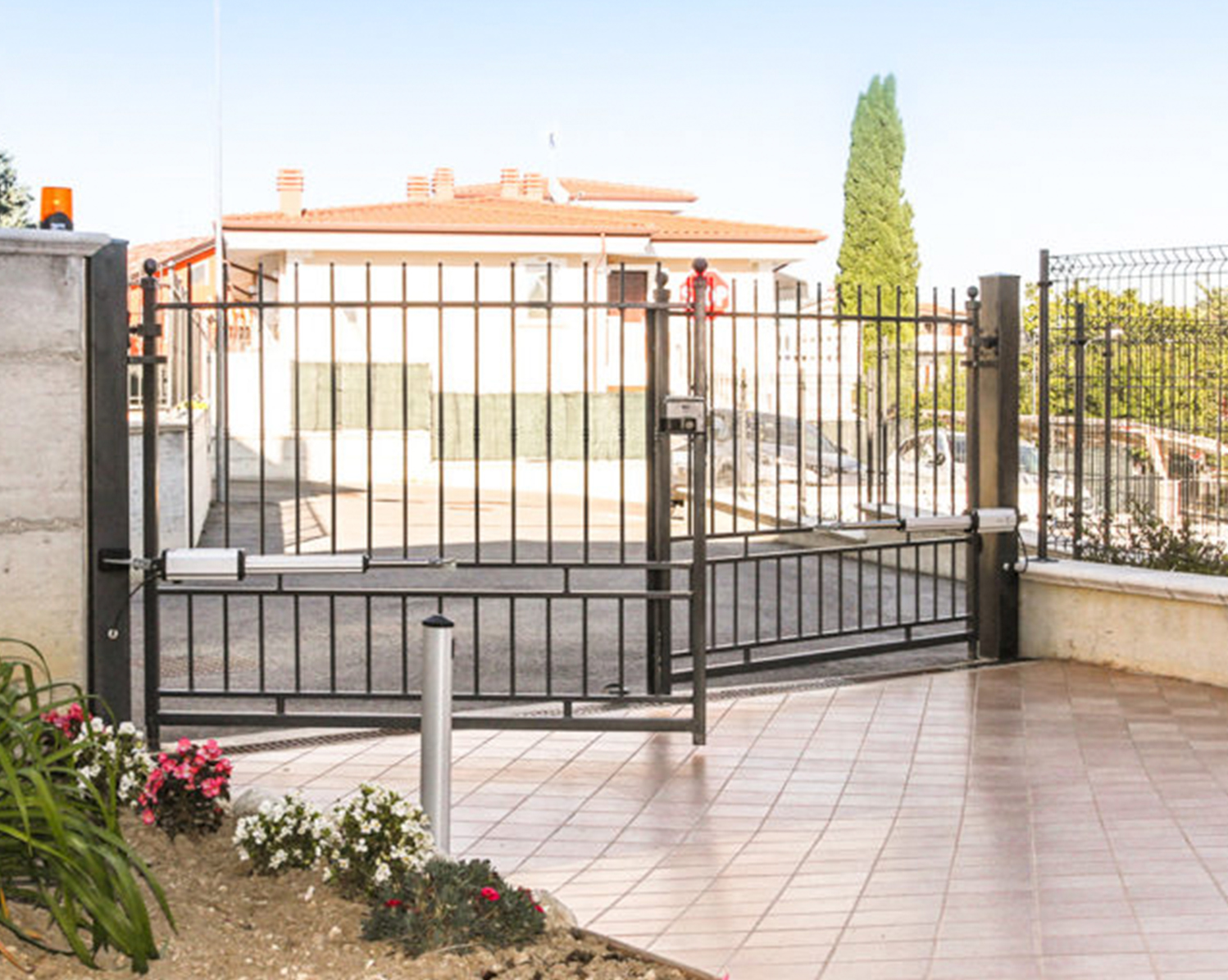 Swing gates are most commonly used in residential applications because of their low cost and ease of installation. Because swing gates travel over a large arc, space must be available to allow vehicles approaching the gate to remain clear while the gate opens or closes. The swinging arc of the gate also requires additional safety consideations to prevent people or vehicles from being hit or trapped by the moving gate.